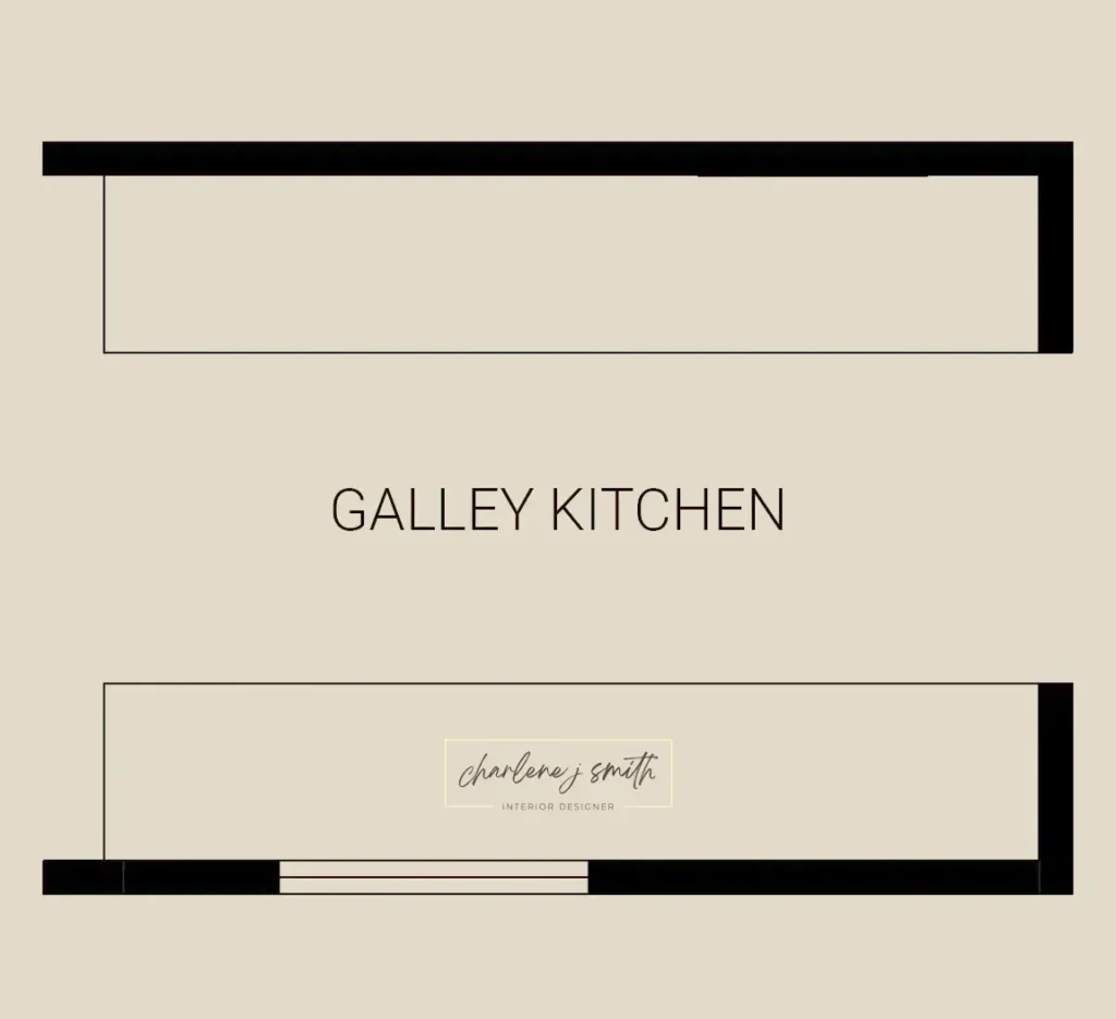 A galley kitchen features two parallel countertops with a walkway in between. Ideal for smaller spaces, it offers great efficiency: