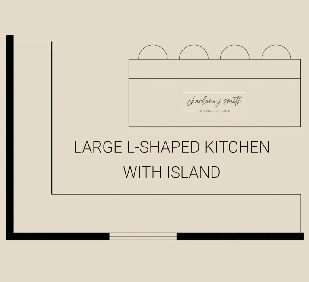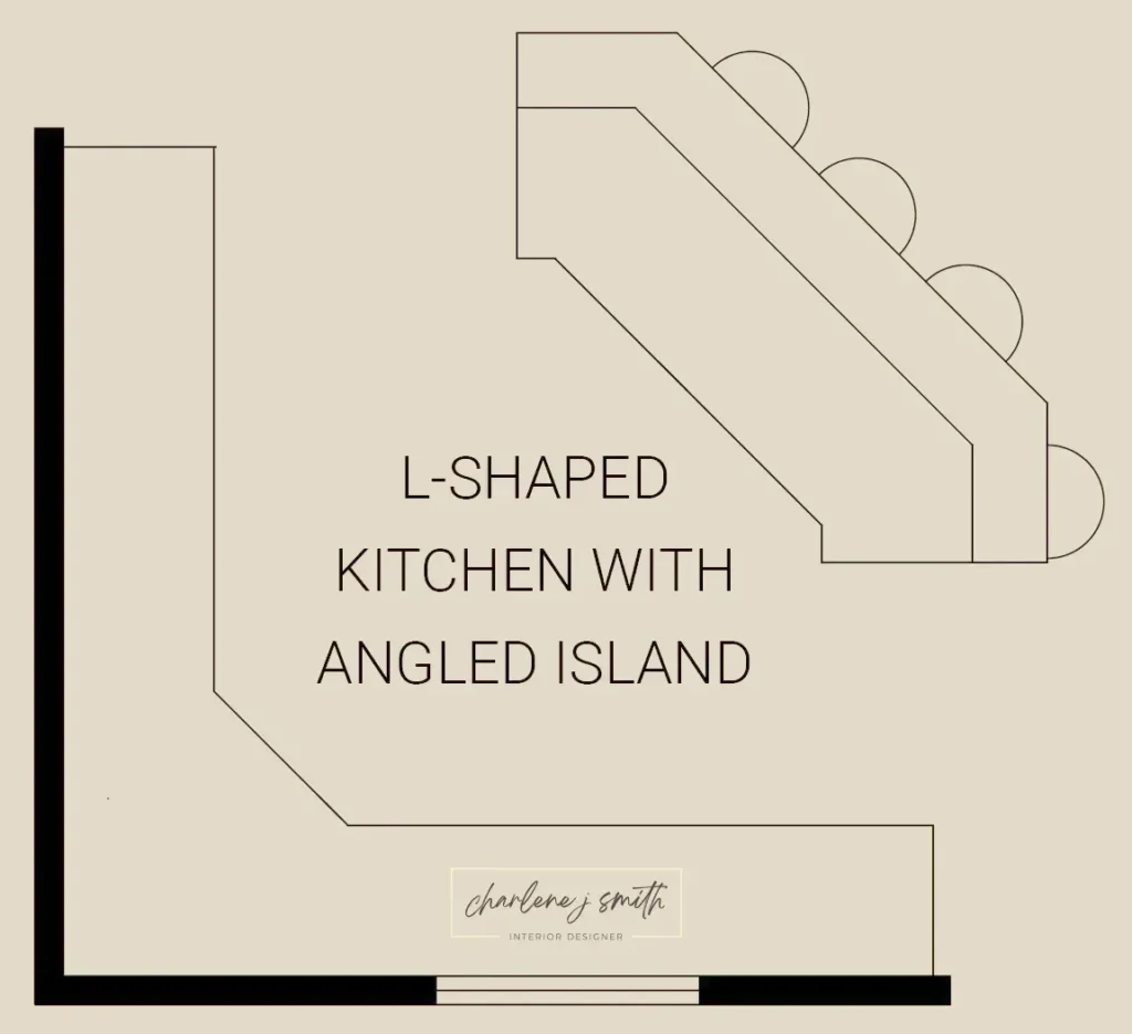 - In an L-shaped kitchen, the island can be angled or parallel